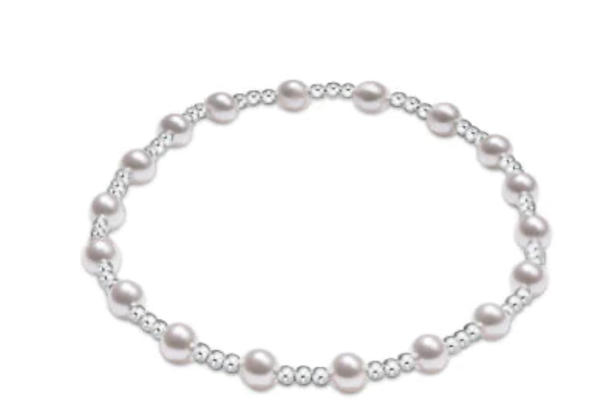 You will fall in love with this classic sincerity pattern 4mm bead bracelet with pearl! This bracelet is a classic sterling beaded bracelet with alternating bead sizes. The larger bead size is a 4mm crystal pearl and the smaller bead size is a 2mm.