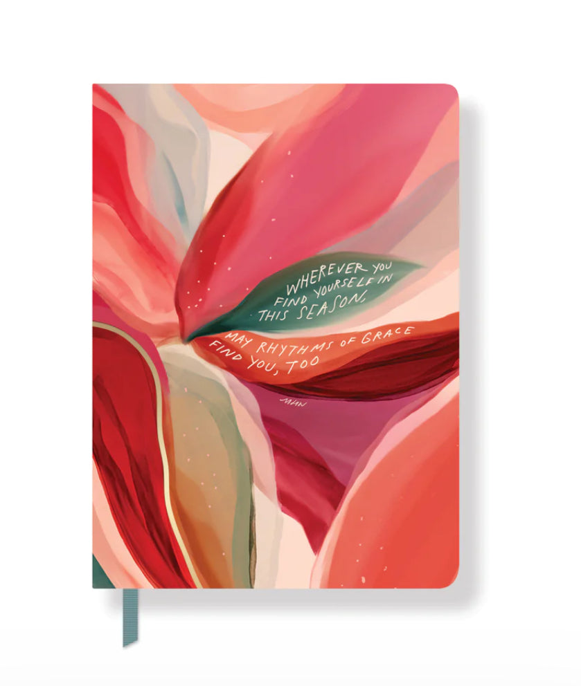 Inspirational message on journal cover: "Wherever you find yourself in this season, may rhythms of grace find you, too"