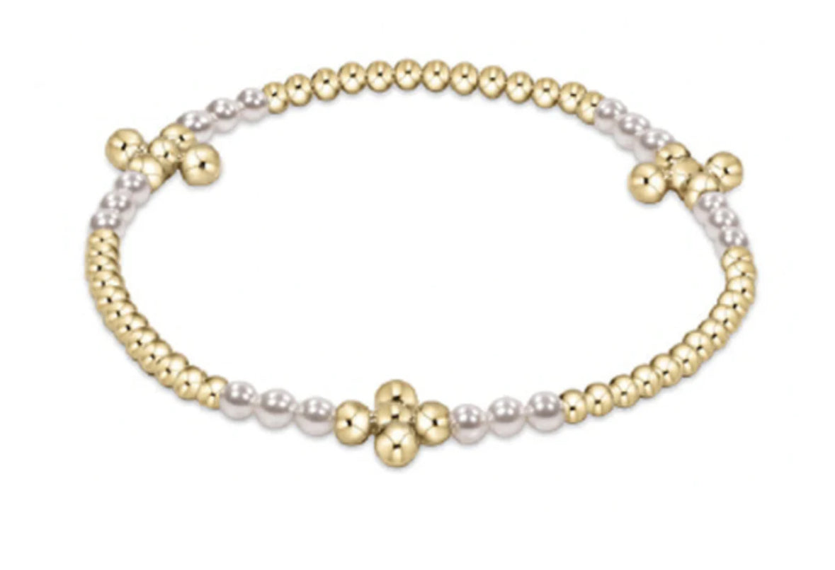 Signature Cross Gold Blissful Pattern 2.5mm Bead Bracelet-Pearl